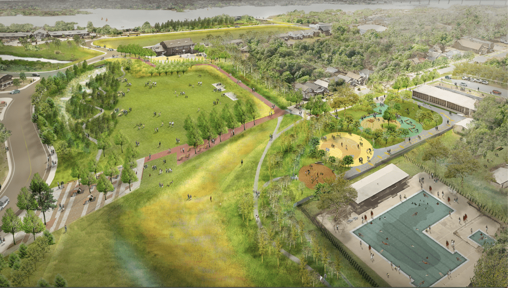 This green-gray dynamic is not an either/or situation. Projects that receive federal funding routinely feature elements of both, incorporating nature-based design or green infrastructure into modern engineering. Take the Hoben Resiliency Park in Hoboken, New Jersey; for example, trees, gardens, and green space filter a million gallons of water by design, while underneath, a giant tank stores another million.